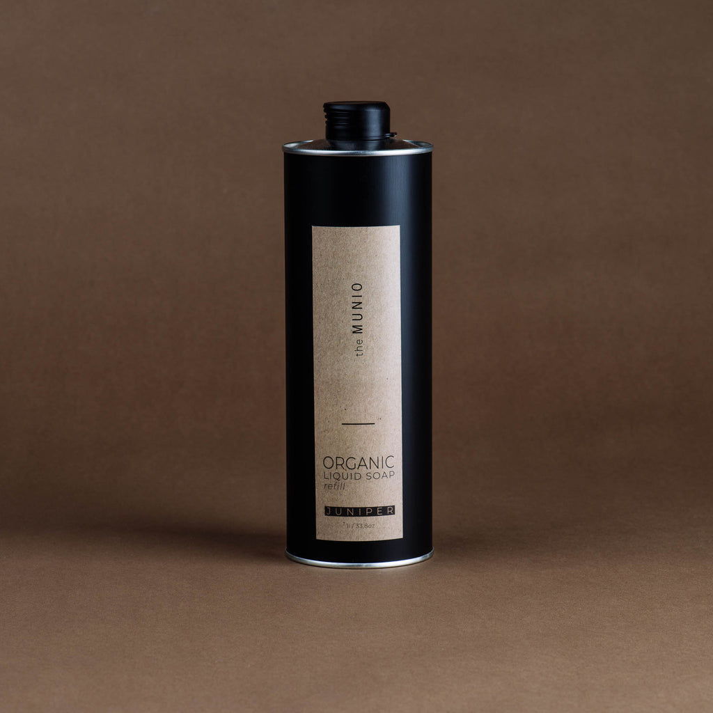 Gently foaming liquid soap made from organic coconut and sunflower oils. Hand poured in metal bottle and fragranced with natural juniper fragrance. Refill the MUNIO liquid soap 200ml glass bottle 5 times.