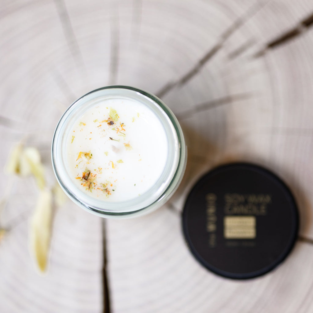 Hand-poured into a glass votive, this mini candle is made from soy wax and a cotton wick, delicately scented with linden flowers fragrance and decorated with linden flowers. Perfect for smaller spaces or moments of calm, it brings the gentle beauty and scent of a blooming meadow wherever you light it.